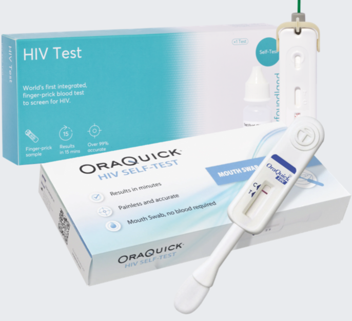 Fe allwch chi gael hunan brawf ar gyfer HIV yn unig – mae hwn yn un ai prawf gwaed neu swab ceg sy’n rhoi’r canlyniad ichi mewn 15-20 munud. Maen nhw’n rhad, yn gywir ac yn gynnil, gan adael ichi wybod eich canlyniad yn gyflym.